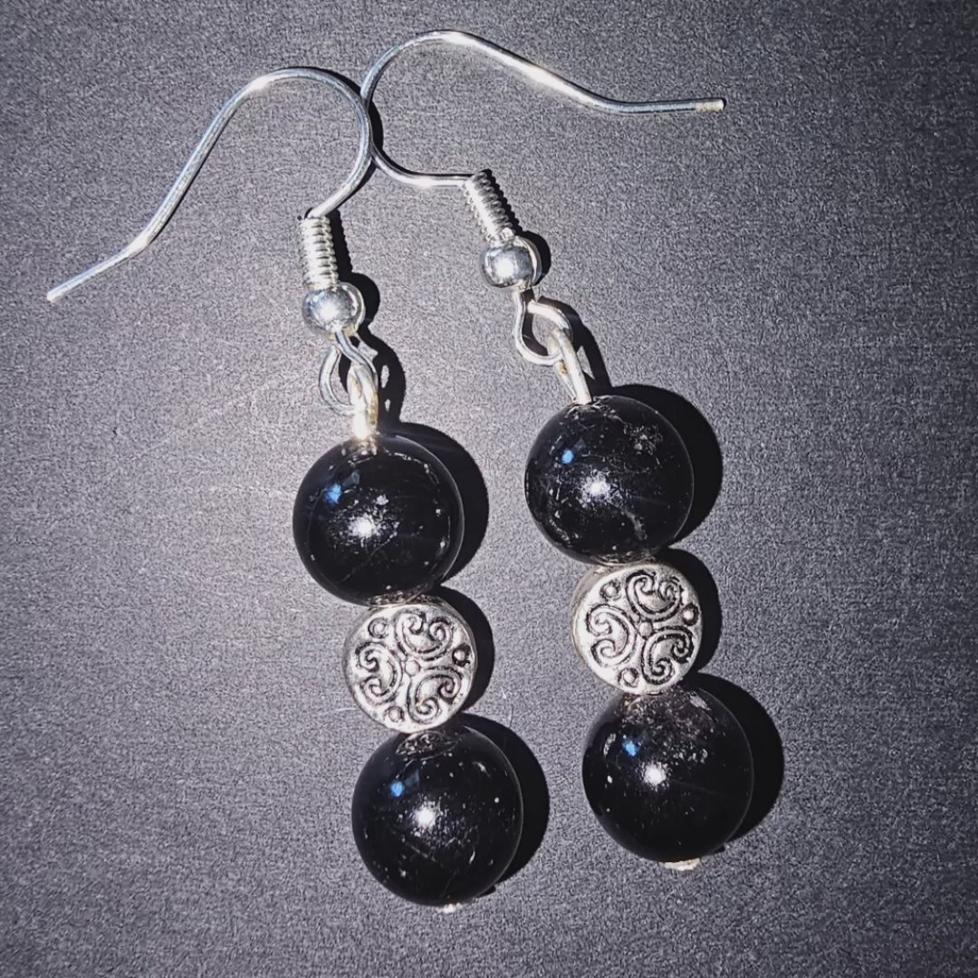 These earrings are designed with Black Tourmaline and nickel free findings.