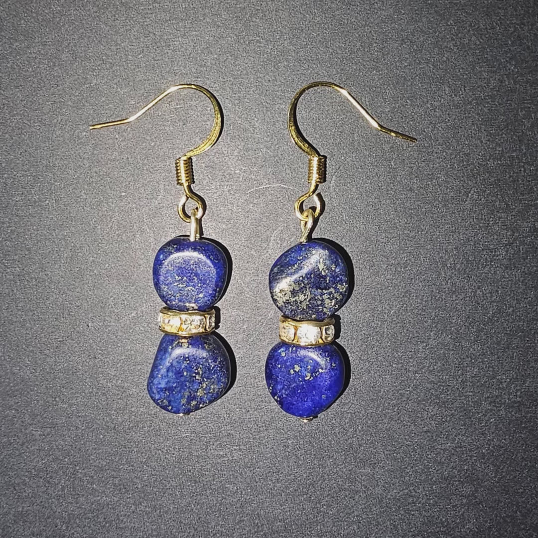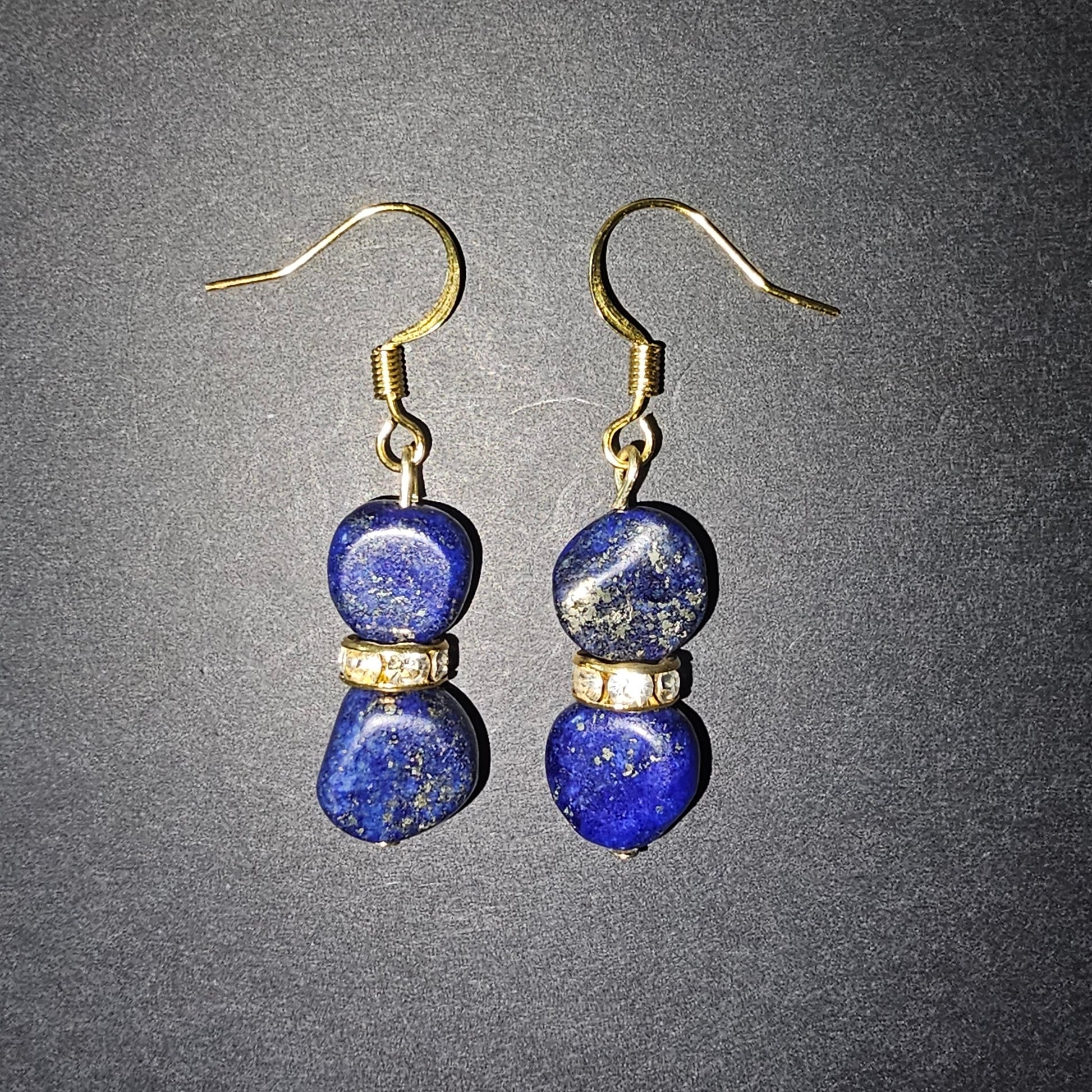 These earrings are made with Lapis Lazuli and nickel free gold plated findings.