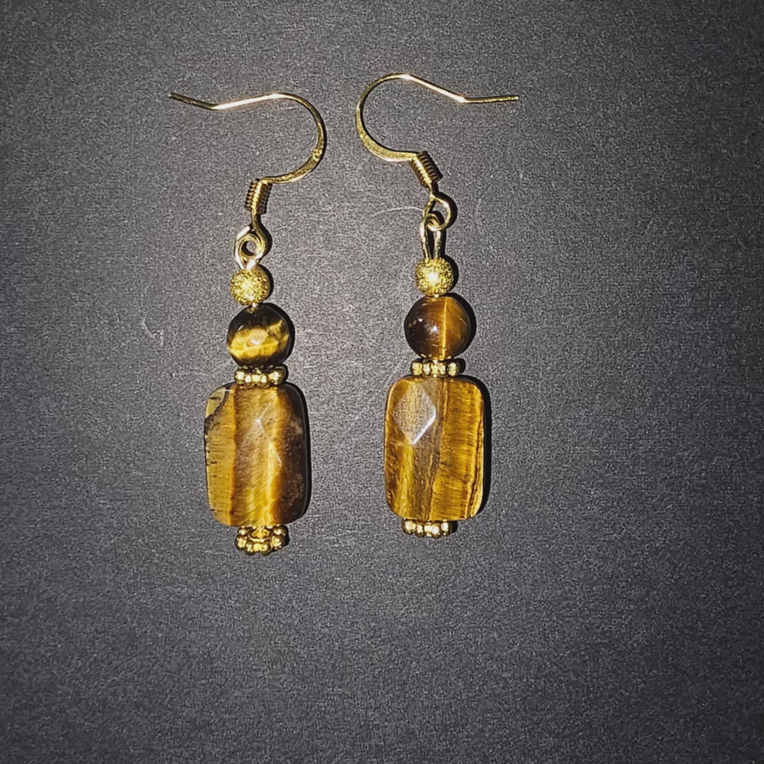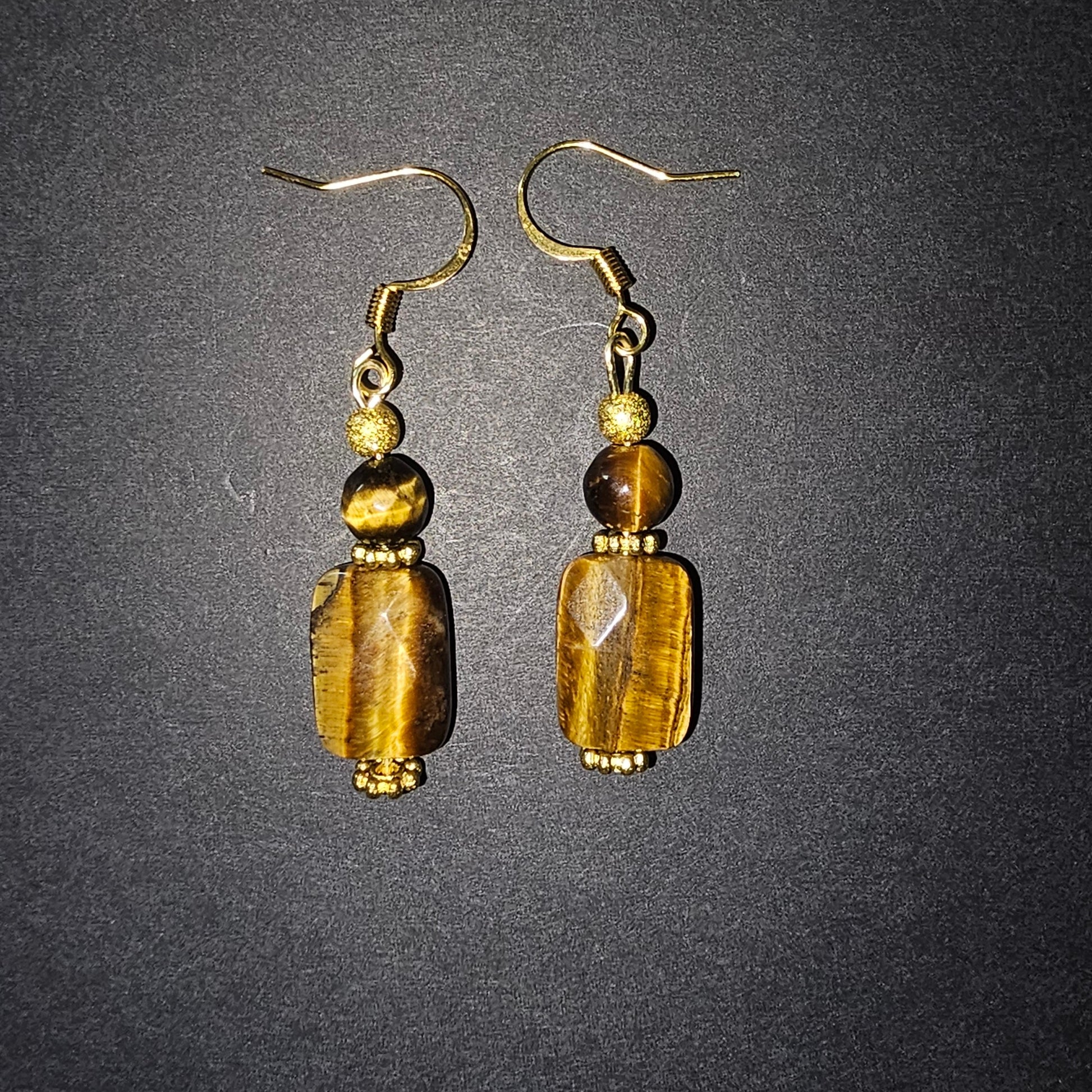 These earrings were designed with Tigers Eye and nickel free gold plated findings.