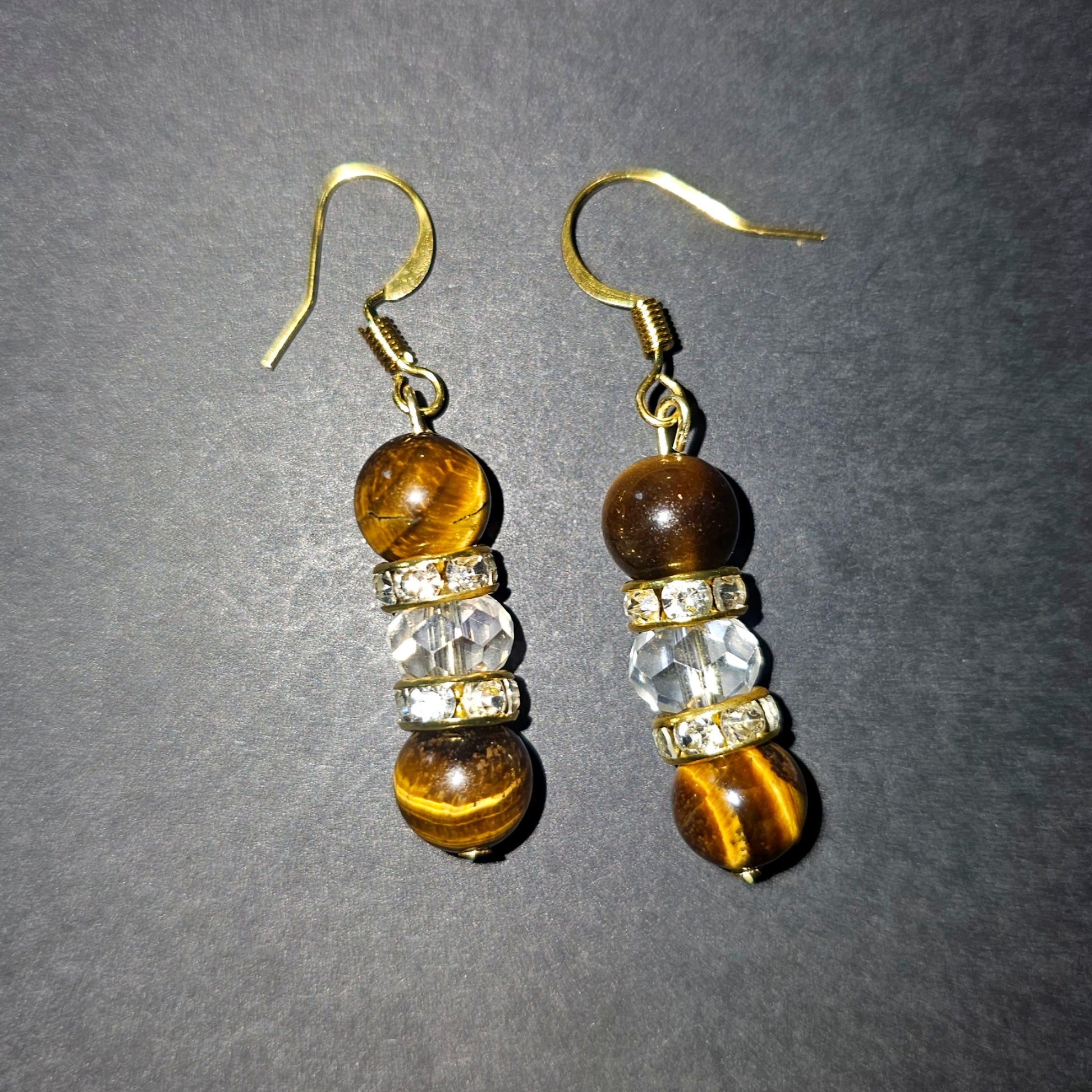 These earrings were designed with Tigers Eye, Resin Crystal and nickel free findings.